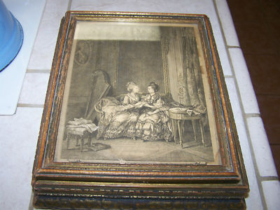 Vintage Ornate Wooden Jewelry Box/Casket With Picture Frame Lid And Picture