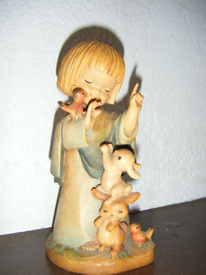ANRI FERRANDIZ 6 INCH HAND CARVED GIRL WITH ANIMALS FIGURINE