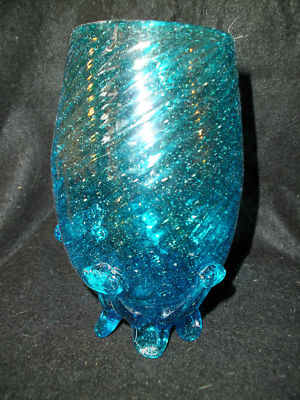 Title (ebay affiliate link): VINTAGE HAND STRETCHED BLOWN SWIRL LARGE BLUE VASE ROUGH PONTIL 8.5" TALL