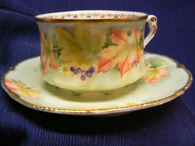 antique Handpainted Bavarian Porcelain Cup and Saucer