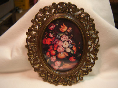 (Vintage) Metal Picture Frame Convex OVAL Glass