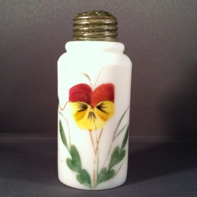 Title (ebay affiliate link): Antique Victorian Opaque Milk Glass Salt Shaker Hand Painted Pansy