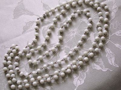Title (ebay affiliate link): VINTAGE GOLD TONE LONG LENGTH SMALL MILK GLASS BEAD NECKLACE