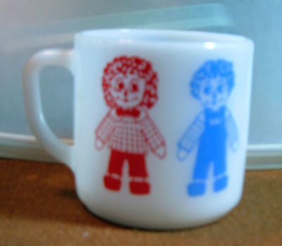Vintage Federal Glass Raggedy Ann & Andy Milk Glass Mug