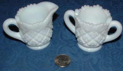 Title (ebay affiliate link): Vintage opaque milk glass cut small cream creamer sugar set 2 1/4" tall EUC NR