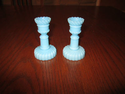 Title (ebay affiliate link): French Vallerysthal Portieux Opaque Blue Milk Glass Candleholders 3-1/4"