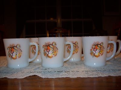Vintage Fire King Tony The Tiger Milkglass Cups/Mugs, Set of 6