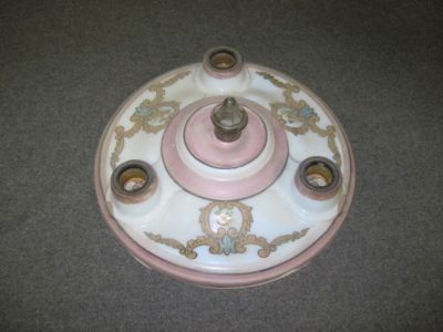 30's Era Painted Milk Glass Flush Mount Ceiling Fixture