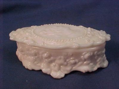 19th C Victorian JENNY LIND White MILK GLASS RING BOX