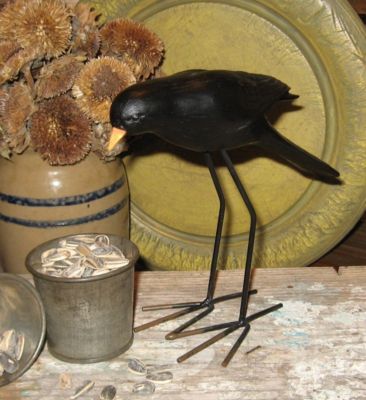 Title (ebay affiliate link): BLacK CROW Raven BiRd Statue~For Wood Table/Shelf/Desk/Mantel-Primitive Decor