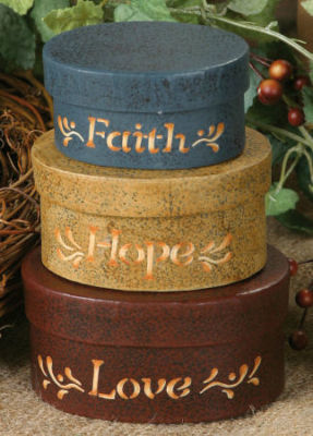 Title (ebay affiliate link): SET OF 3 MINI NESTING BOXES FAITH HOPE LOVE PRIMITIVE COUNTRY HOME DECOR