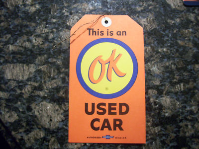 "Original" 1949 Chevrolet OK Used Cars Tag w/ Wire Hanger - NOS