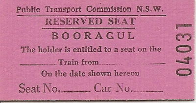 Railway ticket-Australia-NSW-Reserved Seat ticket - Booragul