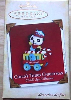 Title (ebay affiliate link): Miniature Hallmark Panda Child's 3rd Christmas Ornament