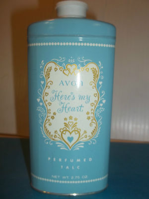 Title (ebay affiliate link): Avon's Here's My Heart Perfumed Talc. 2.75 Oz Tin