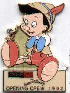 1992 Euro Disney Pinocchio Jiminy Cricket Opening Crew Coca-Cola McDonalds Pin