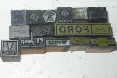 Vtg Wood Print Block Lot Auto Car Ford Chevy Jeep GMC Pontiac Buick Chrysler