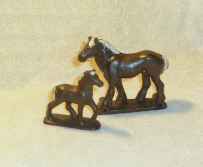 Vintage 1930s Die Cast Belgin Horse and Colt set Metal Rubber Toys
