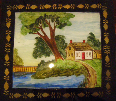 Title (ebay affiliate link): Antique reverse painting on glass mirror insert- folk art handpainted