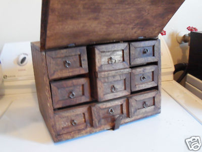 Title (ebay affiliate link): SMALL PRIMITIVE SIX DRAWER WOODEN SPICE CABINET