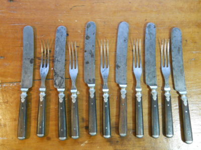 Title (ebay affiliate link): Vintage Antique (11) Piece Meriden Cutlery Forged Steel & Wood Knife & Fork Set