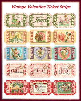 Title (ebay affiliate link): Altered Primitive Vintage Valentine Shabby Chic Heart Filled Ticket Strips