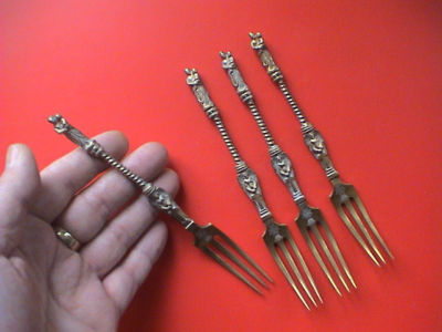 VINTAGE MONASTERY BRONZE FORKS DECORATED WITH MARY AND ANGEL.