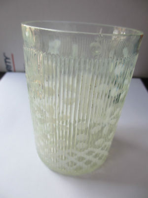 Antique Victorian art glass tumbler white opal snowflake pattern ribbed blown
