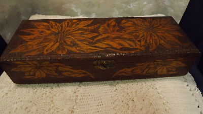 ANTIQUE FLEMISH ART CO WOODEN FLORAL BOX / NEW YORK    NR