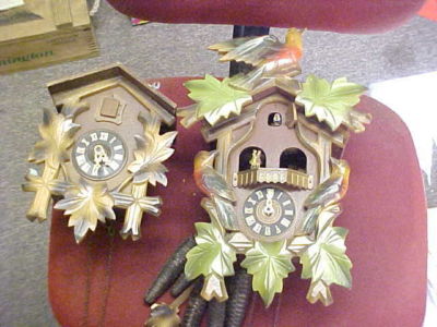 2 OLD GERMAN BLACK FOREST CUCKOO CLOCK w/ COLORFUL BIRD