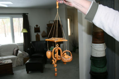 Title (ebay affiliate link): ANTIQUE PRIMITIVE OLD FOLK ART HAND CARVED WOODEN MOBILE BIRDS RABBIT BASKET EGG