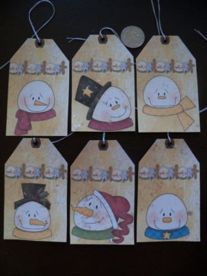 Title (ebay affiliate link): SNOWMEN primitive tags WHIMSICAL SNOWMAN prim MAKE-DO gift tags GLITTER TAG prim