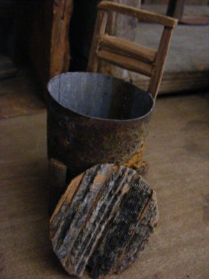 Title (ebay affiliate link): HANDMADE MINIATURE WASHING MACHINE CLOTHSTOOL 4 LOG CABINS ARTIST PAT BROYLES