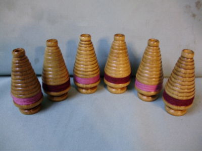 6 WOODEN TREE, CONE SHAPE SPOOLS, BOBBINS