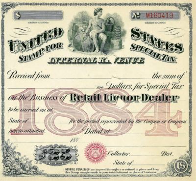 Antique 1884 MOONSHINE Whiskey STILL Liquor License Brewer Bar Civil War Tax