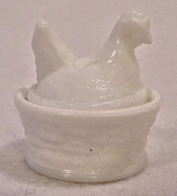 E.E. MINI HEN ON NEST OPEN SALT MILK GLASS (E1ZB)
