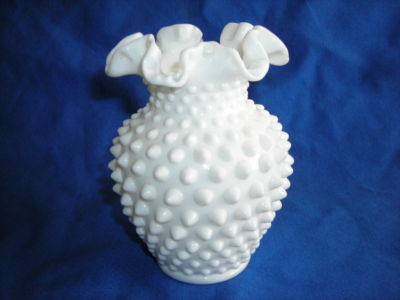 Title (ebay affiliate link): VINTAGE White Milk Glass Crimped Ruffled FENTON VASE 5.5"H 4" W EXCELLENT