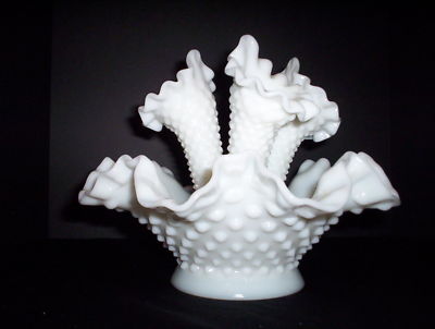 Fenton Hobnail Milk Glass Epergne 3 horn