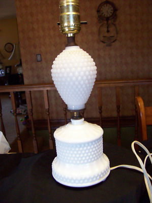 Title (ebay affiliate link): Vintage White Opaque milk glass lamp with hob nail pattern