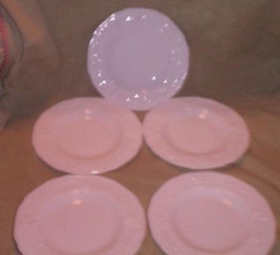 5 INDIANA MILKGLASS HARVEST GRAPE 6-1/4" BREAD & BUTTER PLATES UNUSED