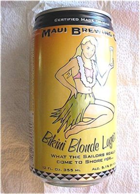 Title (ebay affiliate link): Bikini Blonde Lager Maui Hawaii Brewing Company Sea Turtle Hula Design BEER CAN