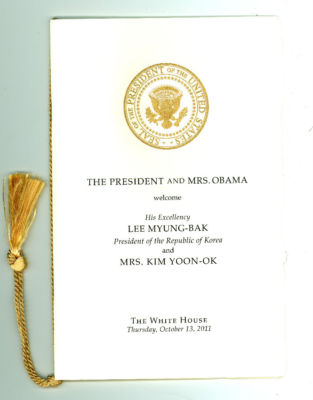 Title (ebay affiliate link): Obama White House Welcoming Ceremony Booklet For The President of Korea