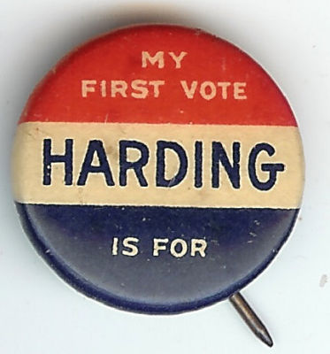 Title (ebay affiliate link): My First Vote Is For HARDING Red White & Blue Pin!