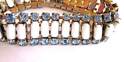 Vintage Milkglass Rhinestone Choker Necklace Blue IceÂ