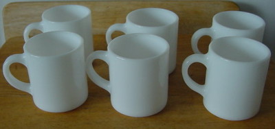 6 Hazel Atlas Milk White C Handle Coffee Cups Mugs