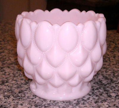 FOSTORIA GLASS PINK MILK GLASS ELIZABETH ROSE BOWL VASE