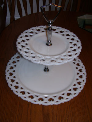 Title (ebay affiliate link): Westmoreland Milk Glass 2-Tire Forget Me Knot Serving Plater