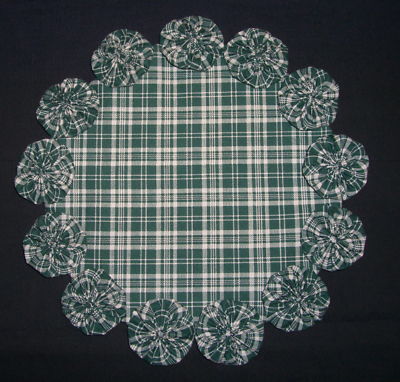 Title (ebay affiliate link): Primitive Green / Ecru Plaid Fabric Yo Yo Candle Mat Doily Centerpiece