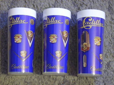 LOT OF 3 VINTAGE CADILLAC PLASTIC TUMBLERS DEALER PROMOS NOS