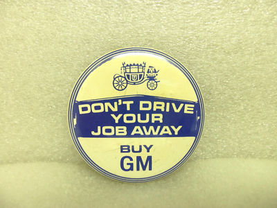 Title (ebay affiliate link): VINTAGE GM PIN BACK BUTTON DON'T DRIVE JOBS AWAY LABOR UNION UAW SIGN MADE USA
